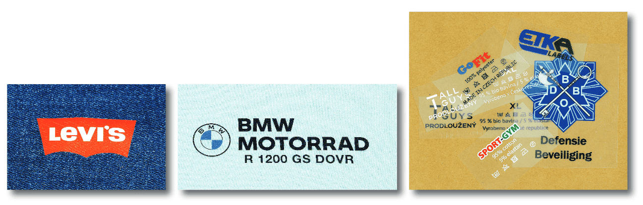 Alternativou k textilní etiketě může být nažehlovací transfer. Každá textilní etiketa má nepříjemnou vlastnost - ve výrobku „je navíc“ - překáží, při styku s pokožkou škrábe. Tuto nepříjemnost dokáže transfer zcela odstranit. Transfer je sice natisknut na přenosové plastové folii, ale ta slouží pouze jako dočasný nosič natištěného motivu. Při zažehlení se na textilní výrobek přenesou pouze vytištěné motivy, přenosová folie se odstraní. Výsledkem je tisk přímo na textilní materiál. Tisk zcela splyne s potiskovaným materiálem. Pokud jsou natištěna drobná loga a nápisy, zachovává si textilní materiál i původní elastičnost. Pouze u větších souvislých tištěných ploch se tiskem materiál zpevní a elastič- nost se sníží. Takto nažehlený tisk má výbornou trvanlivost, nebledne, nespírá se. Výhodou metody je neomezená barevnost, včetně tisku fotografií a obrázků. Metoda je plně digitální, nevznikají žádné náklady na přípravu tisku (štočky, tiskové formy, síta).